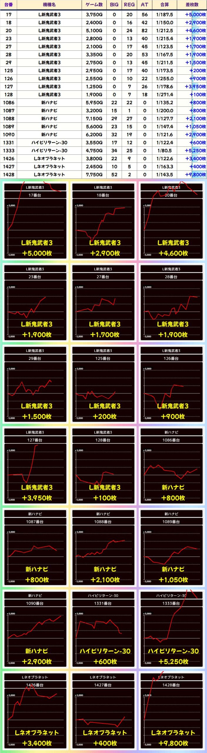■Lネオプラネット (3/4台+) ➡平均 +3,325枚
