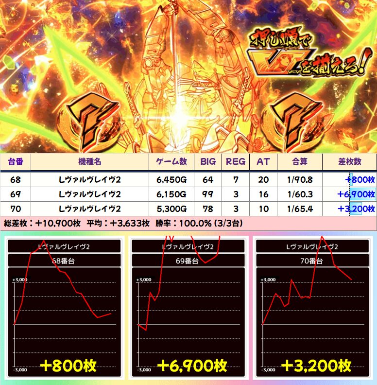 【3台並び】ヴヴヴ2(68-70番台)→平均+3633枚