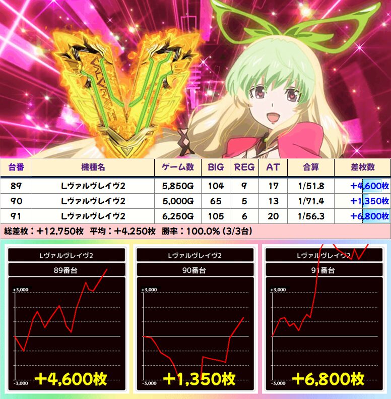 【3台並び】ヴヴヴ2(89-91番台)→平均+4250枚