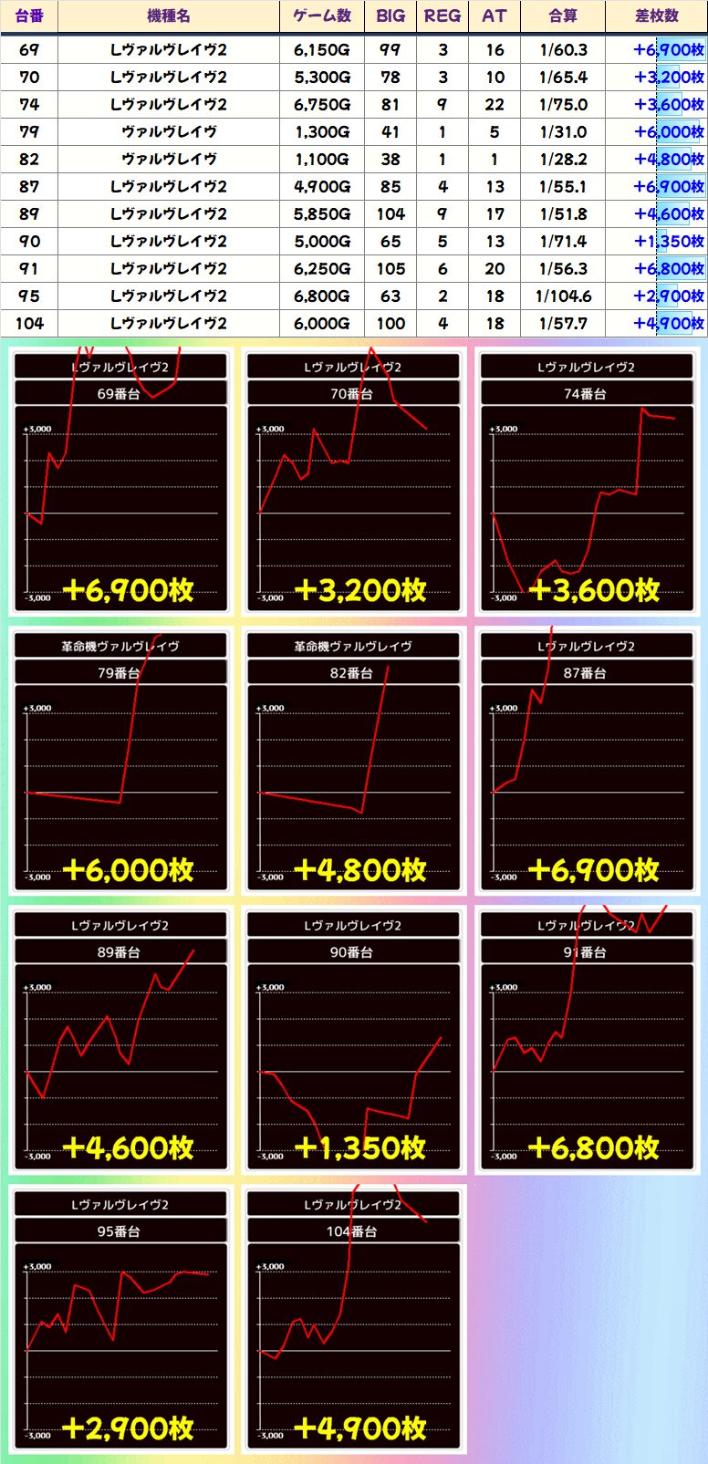 ヴァルヴレイヴ2には並びの仕掛けか2か所ありましたが単品優秀台もアリ。もちろん初代ヴヴヴからの4000枚超、6000枚超も確認できました!