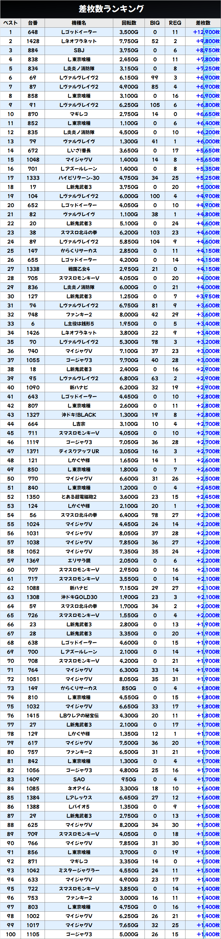 差枚数ランキング&島図をチェック!