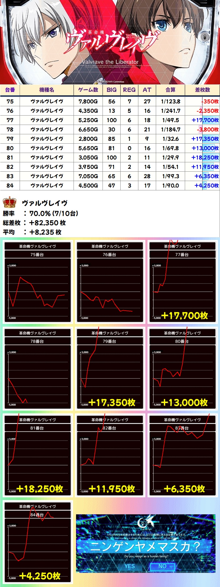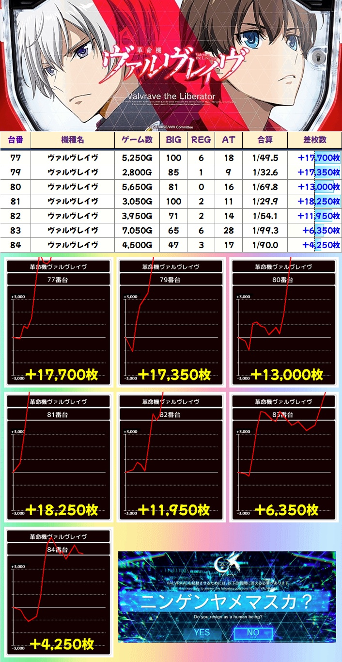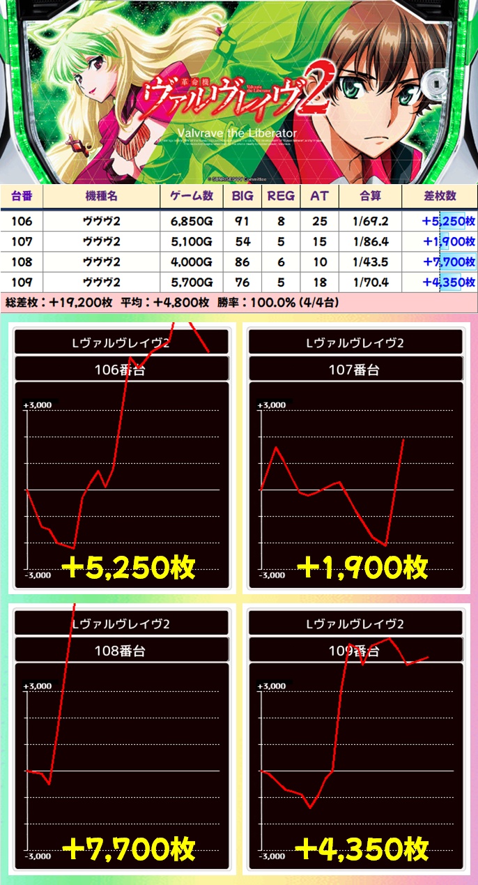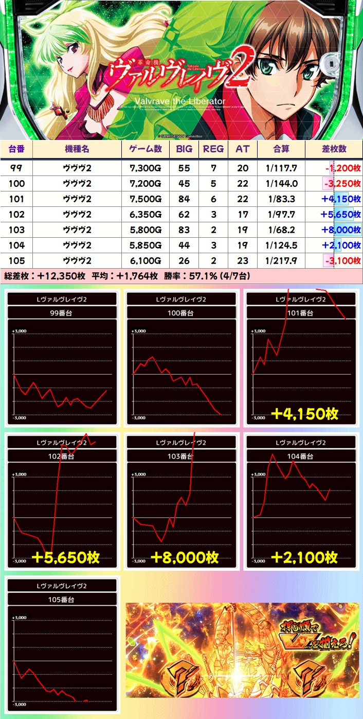 全系機種であった初代ヴヴヴは5台が万枚超でうち3台がコンプクラスとぶっ飛んだ結果に!