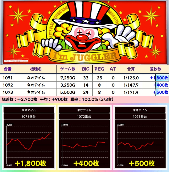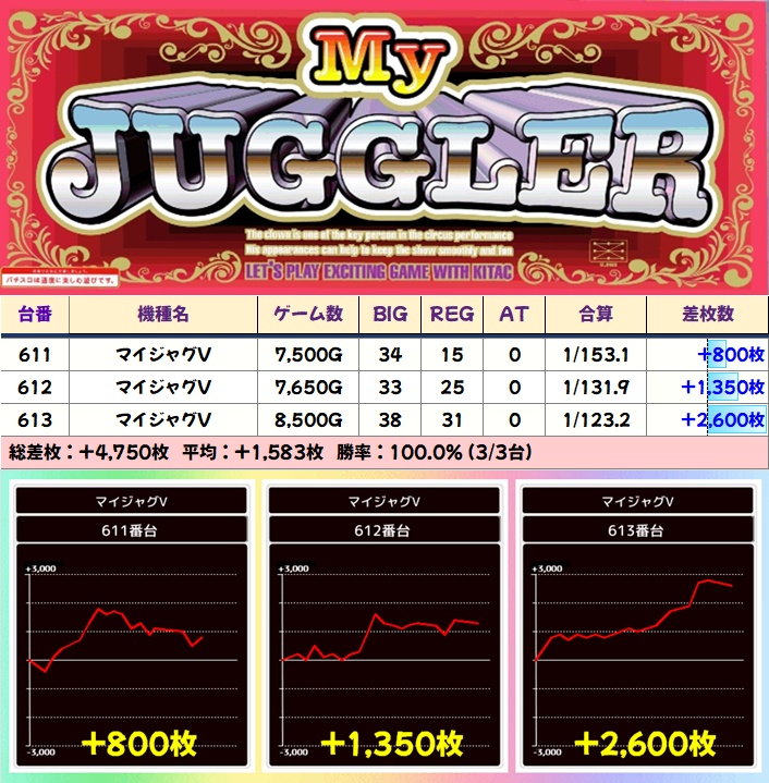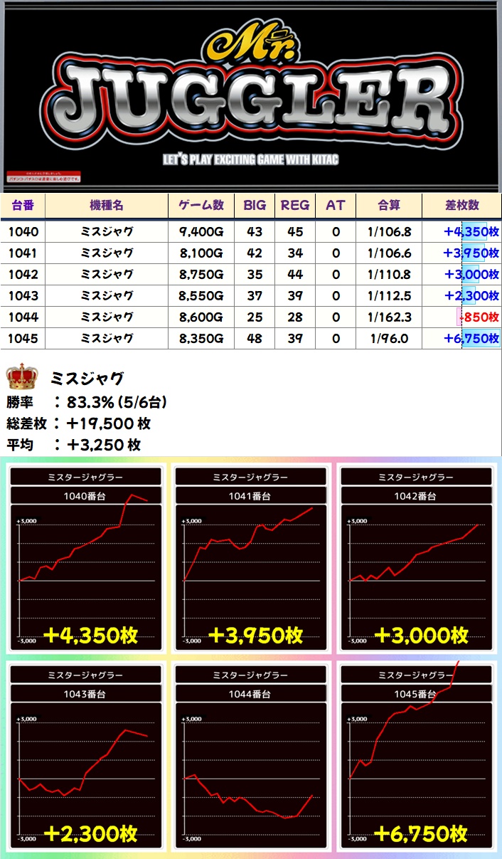 ミスジャグ (5/6台+) ➡平均 +3,250枚