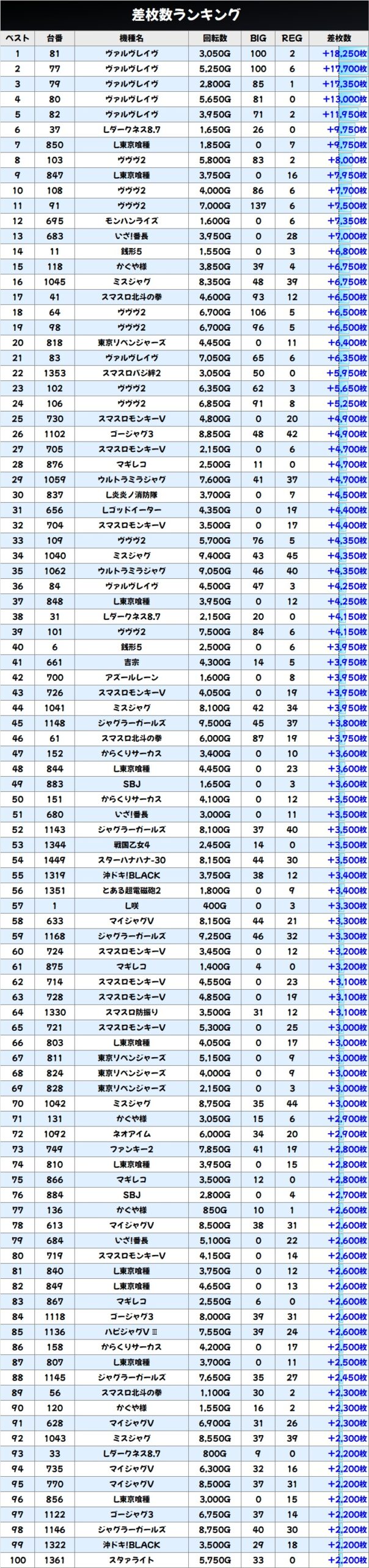 差枚数ランキング&島図をチェック!