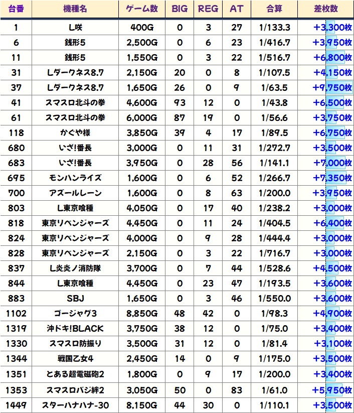 下記に各機種の優秀台をピックアップしてみました!