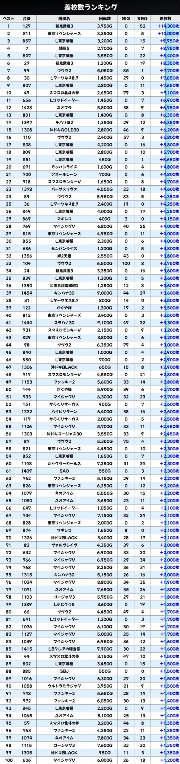 各機種の優秀台をピックアップしていますのでデータを確認してみましょう!