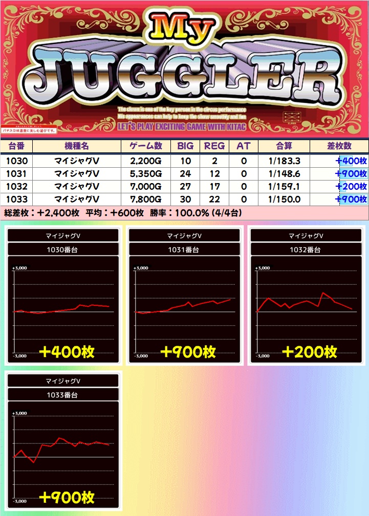 ジャグラーシリーズから4か所、新ポスター機種の「ヴヴヴ2」、1/2系濃厚でもある「東京喰種」、沖スロの機種またぎなど多彩な機種から出現!