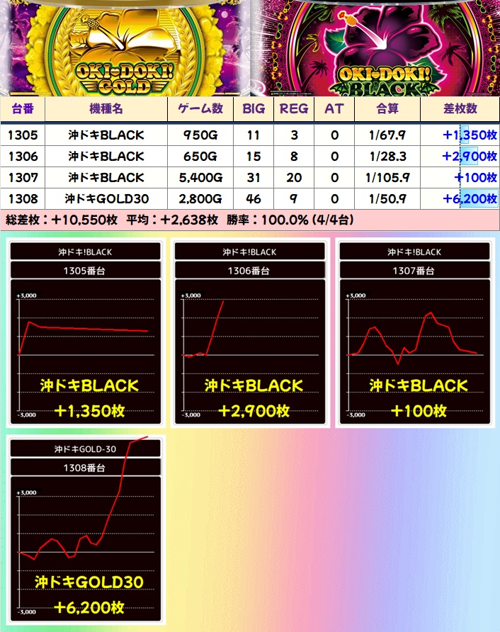 【4台並び】沖ドキBLACK・GOLD30(1305-1308番台)