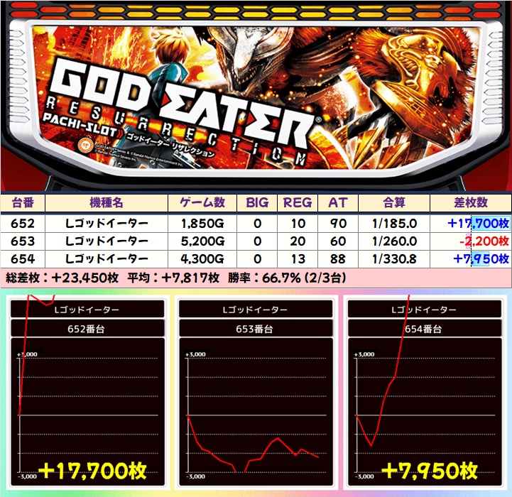 中でも「ゴッドイーター」の並びは万枚オーバーもあり平均+8000枚クラスと圧巻でしたね!