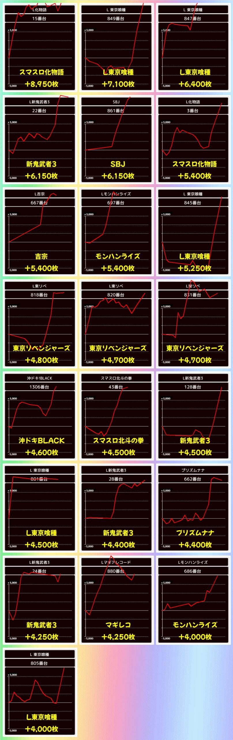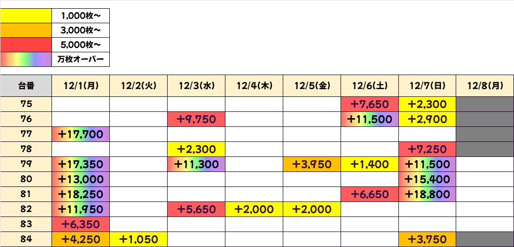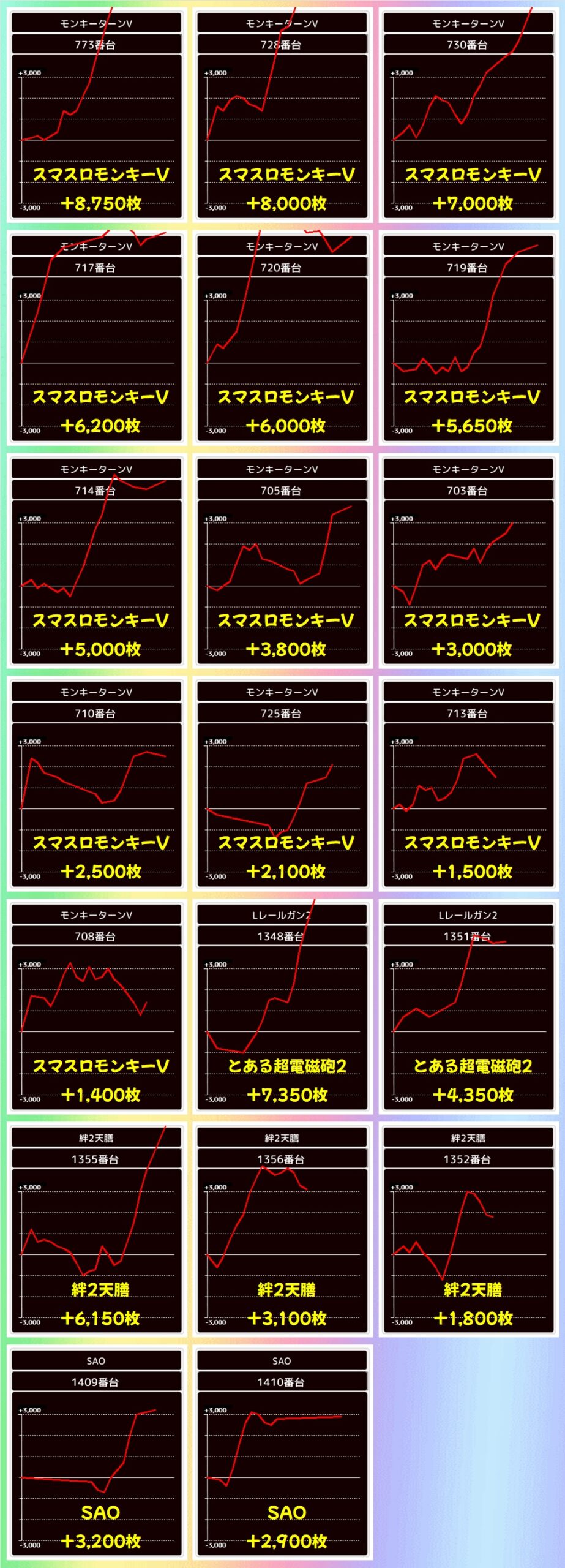 複数の+8000枚以上を筆頭に計7台が+5000枚以上と優秀台ラッシュ!