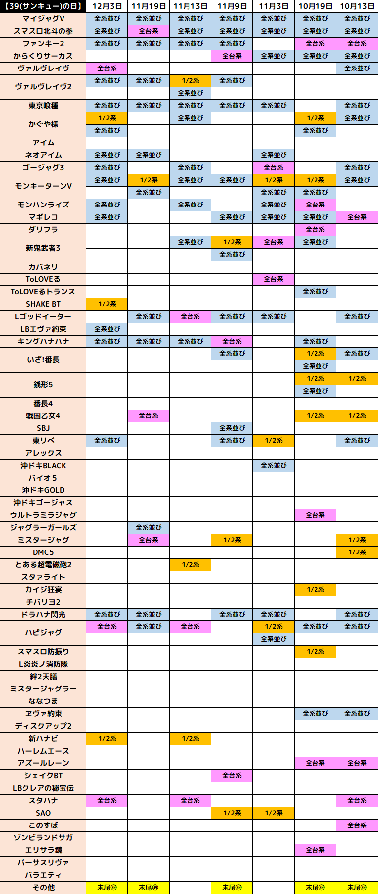 この日は下記の3機種に1/2系濃厚の仕掛けがあった模様です。