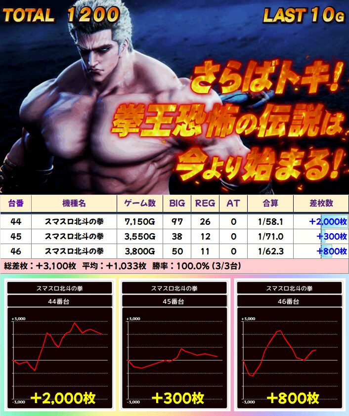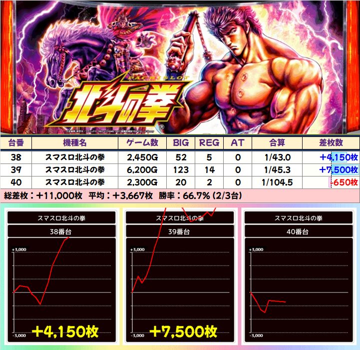 複数並びのあった「北斗の拳」には平均+3500枚以上の並びも!
