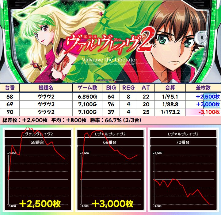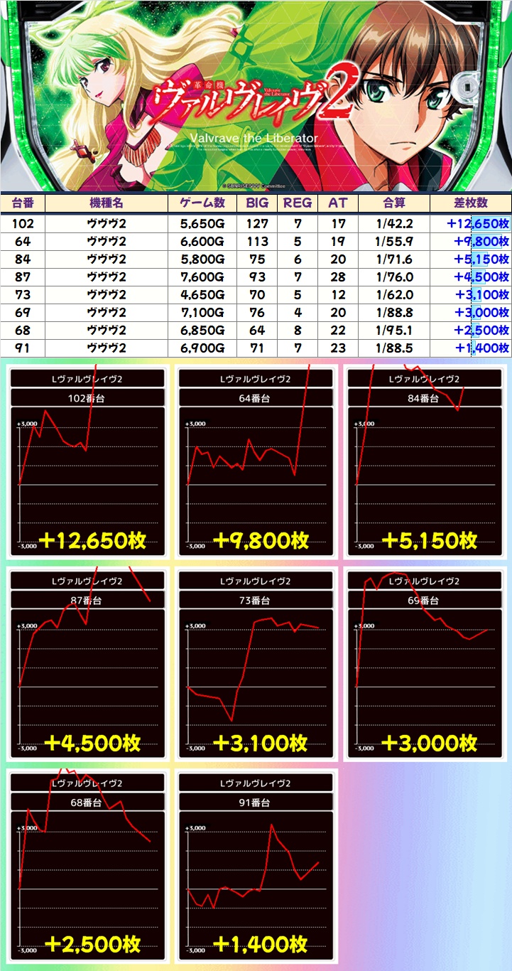 この日は「ヴァルヴレイヴ2」に並びの仕掛けがありましたが、並び以外からも万枚オーバーなど優秀台を多数確認!