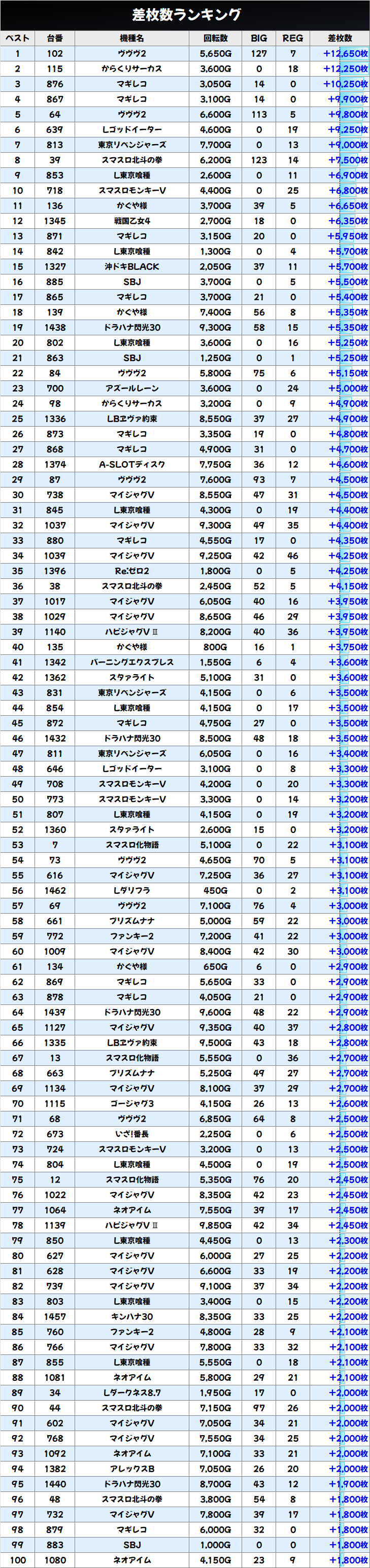 差枚数ランキング&島図をチェック!