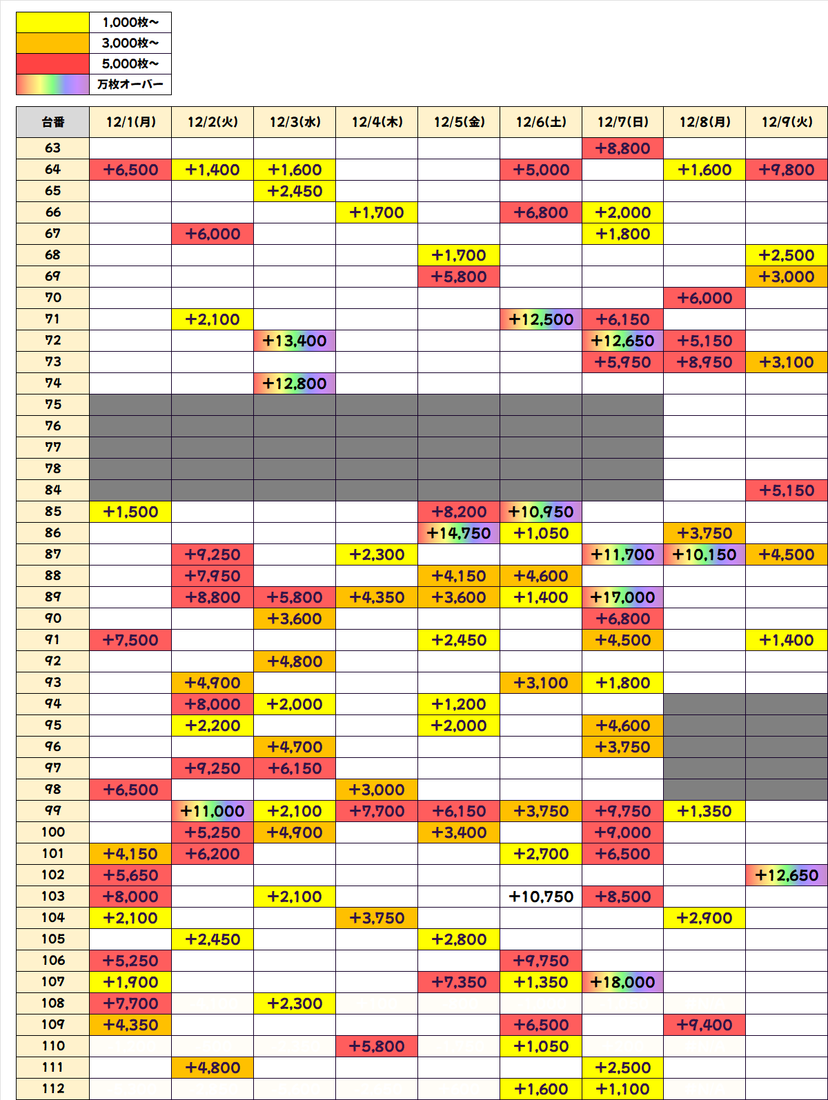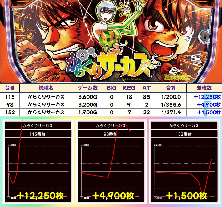 「からくりサーカス」からは万枚オーバー、+5000枚クラスと猛爆台を複数確認!
