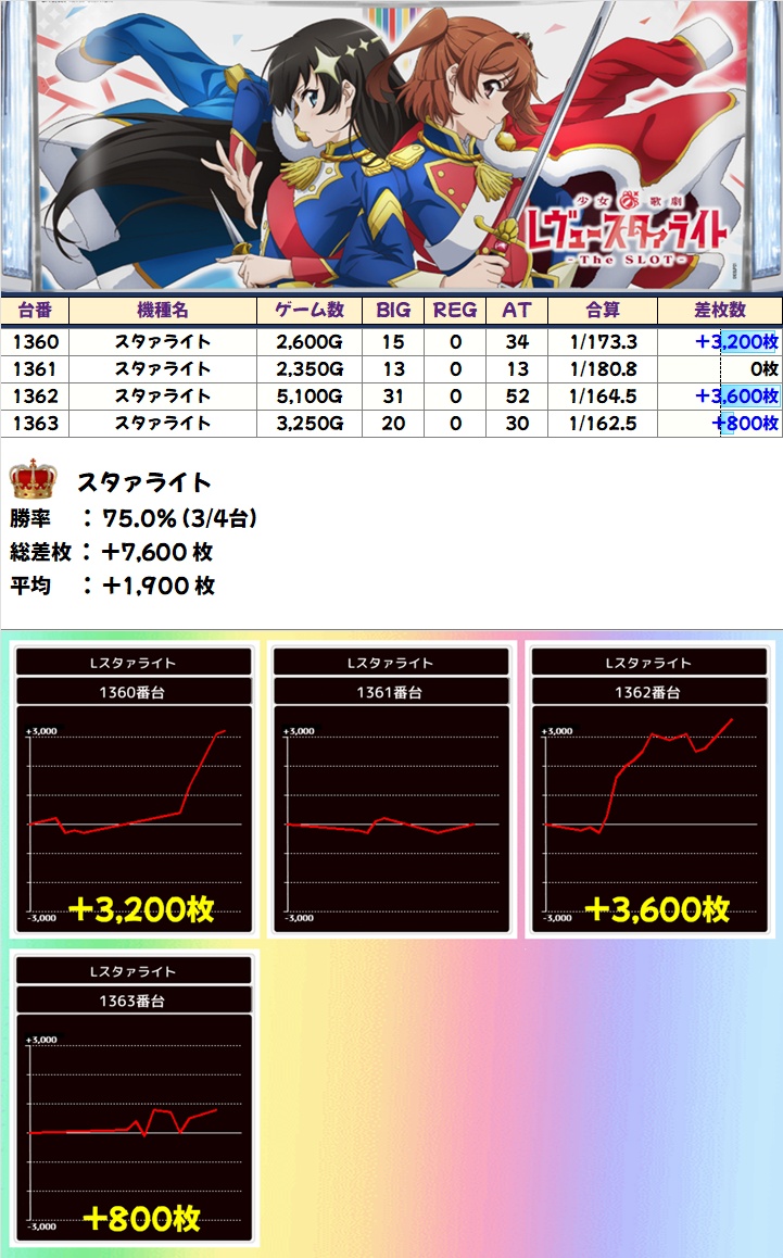 レヴュースタァライト(3/4台+)➡平均+1,900枚