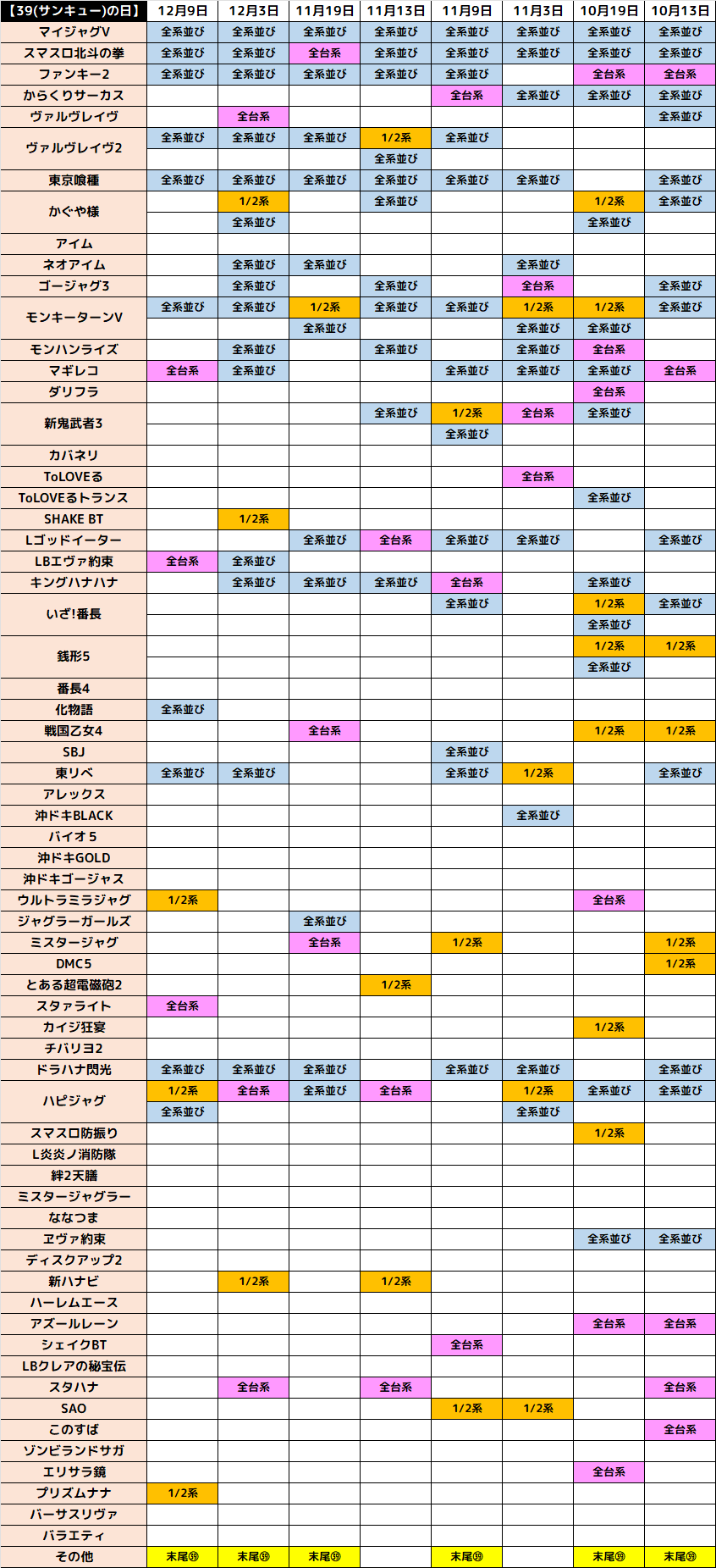 また、全台系③機種と大量の③台並びが③⑨の日に恒例の仕掛けとなっており、いずれの仕掛けも幅広い機種から出現を確認できております。