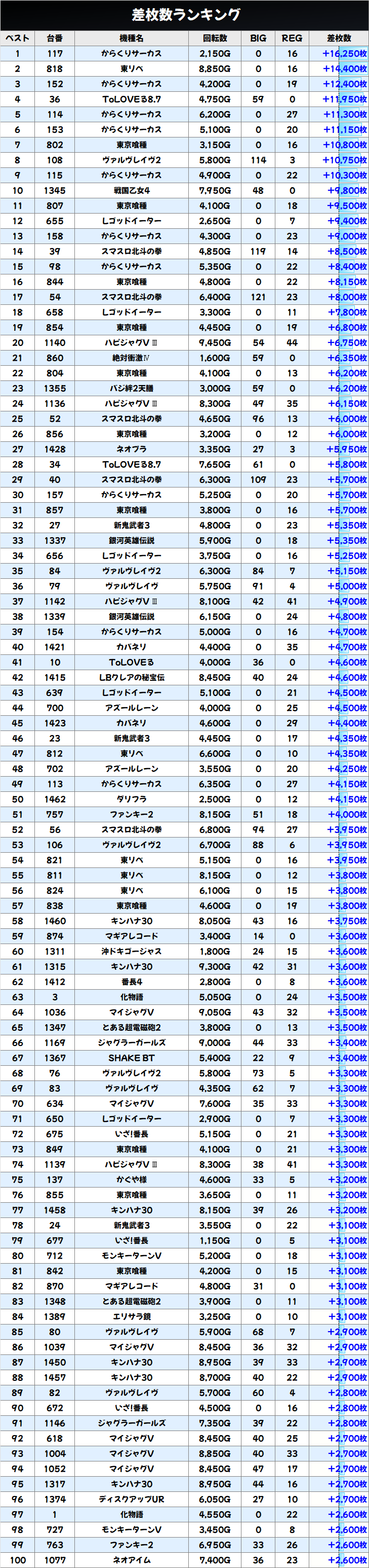 こちらも優秀台(+1000枚超)をピックアップしていきます!