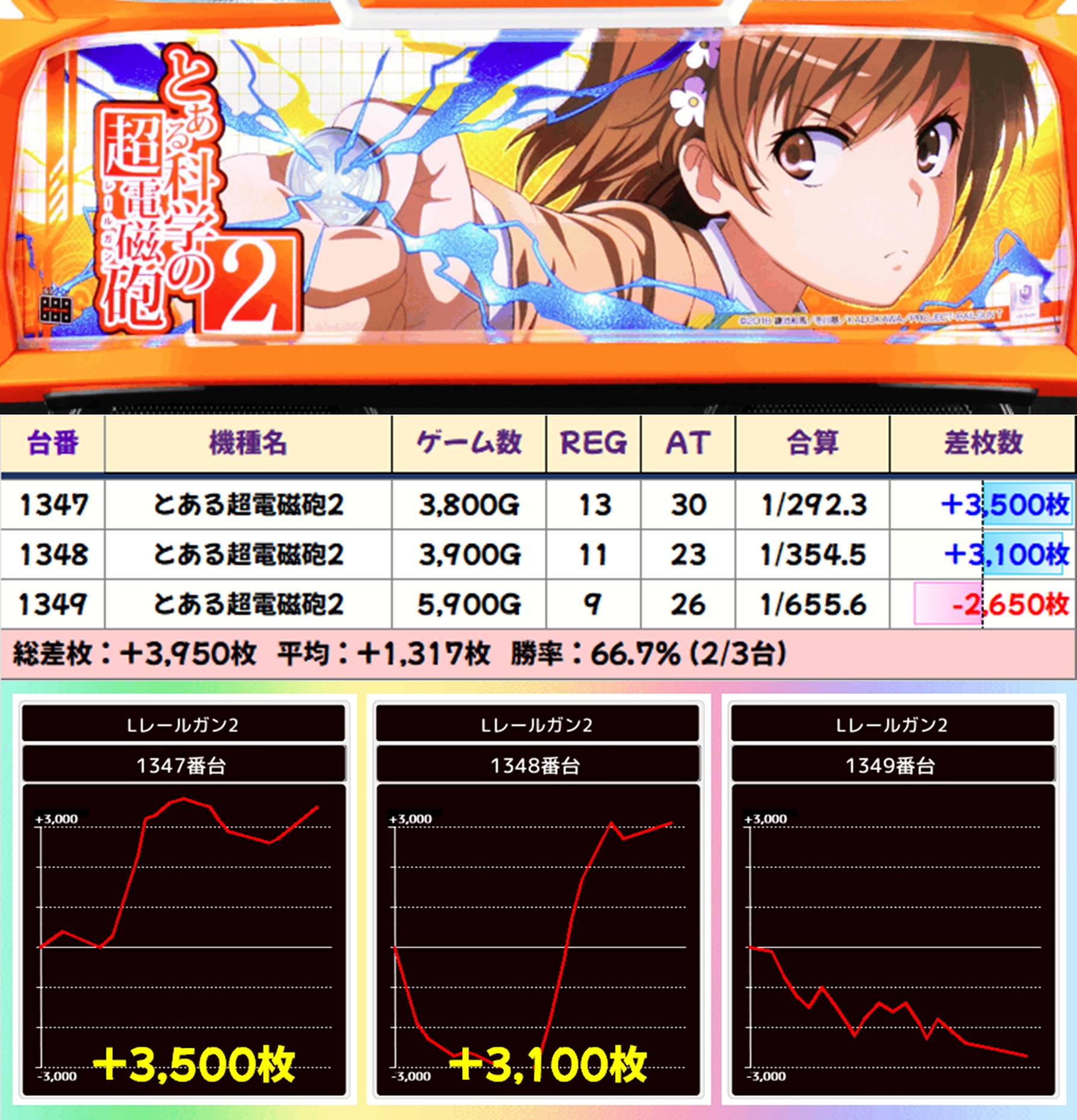 【3台並び】とある超電磁砲2(1347-1349番台)→平均+1,317枚