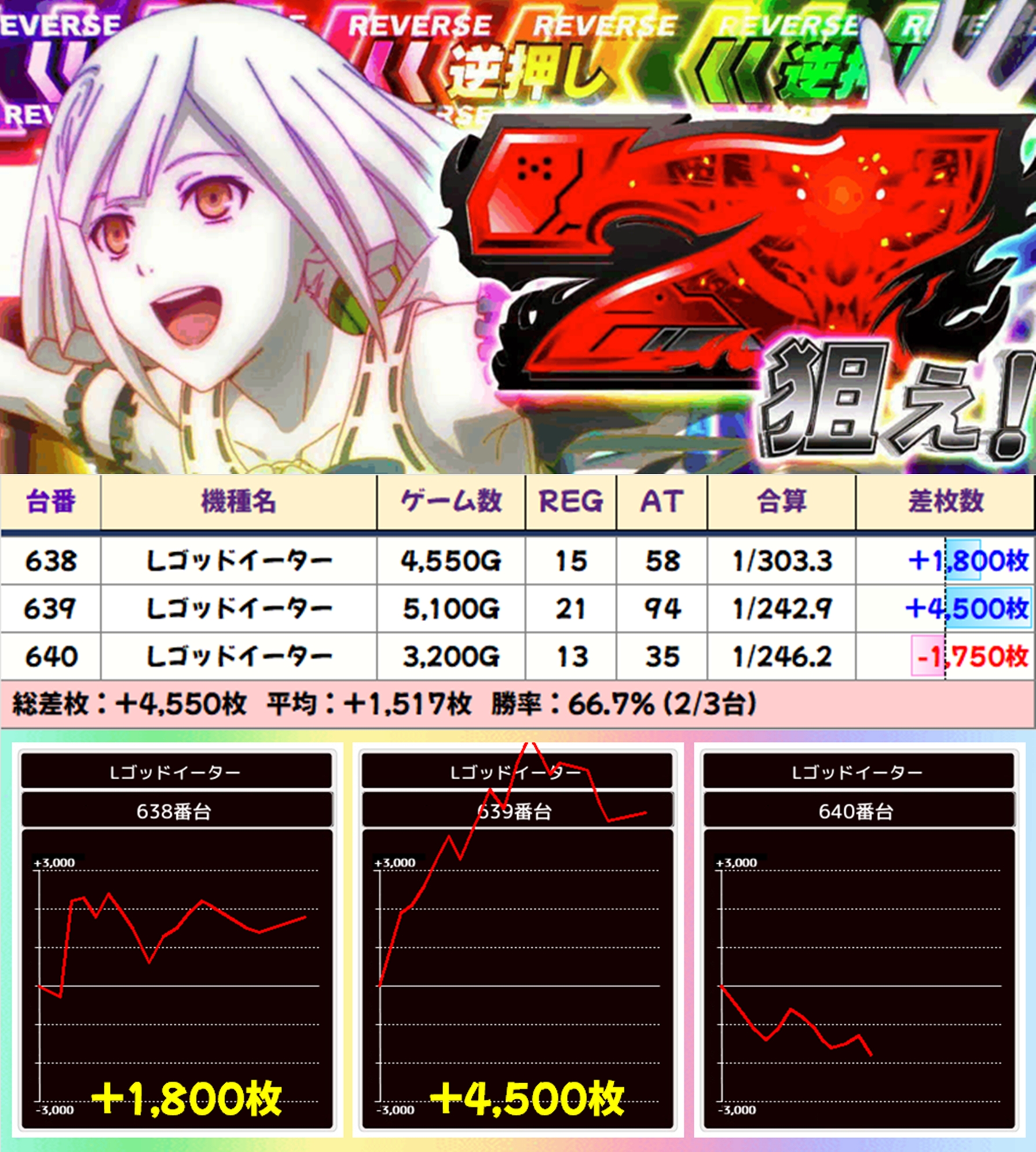 【3台並び】Lゴッドイーター(638-640番台)→平均+1,517枚