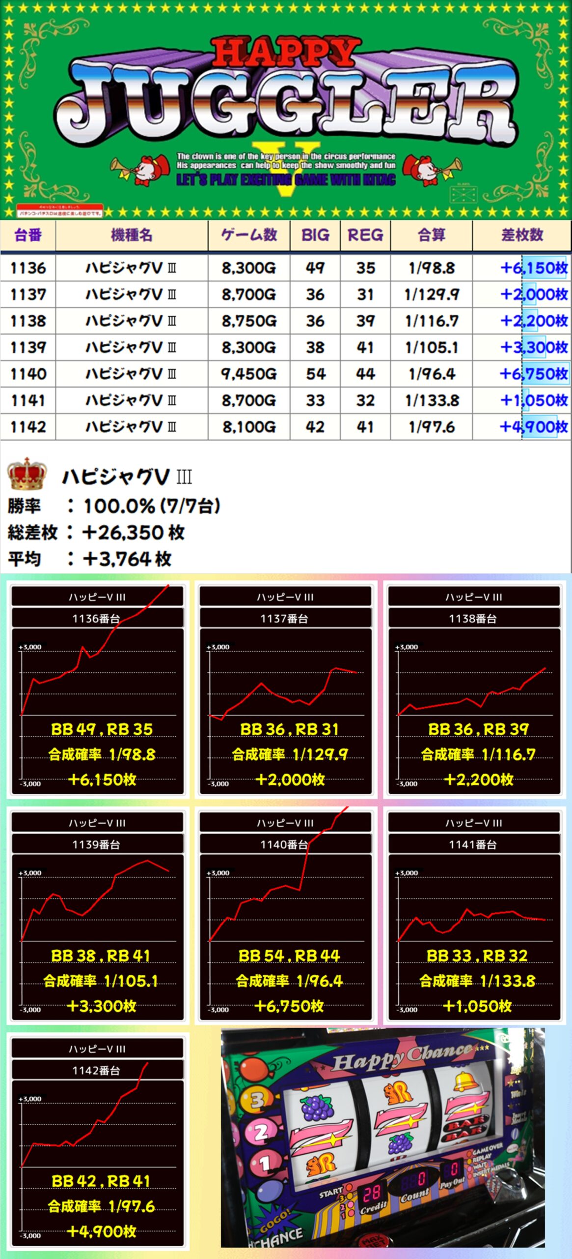 【全台系濃厚】ハピジャグV Ⅲ(7/7台+)→平均+3,764枚