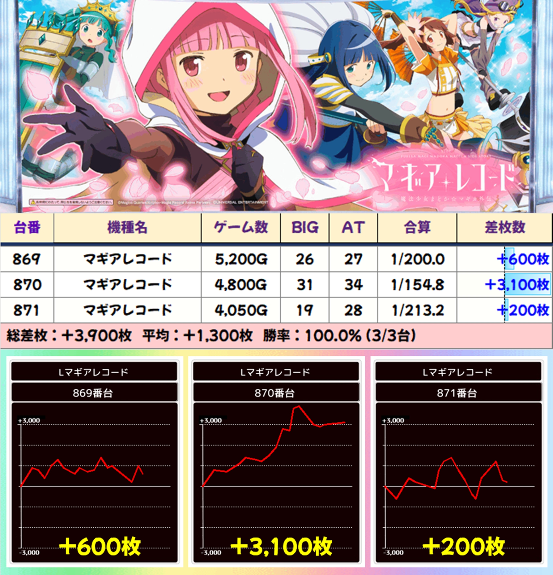 【3台並び】マギアレコード(869-871番台)→平均+1,300枚
