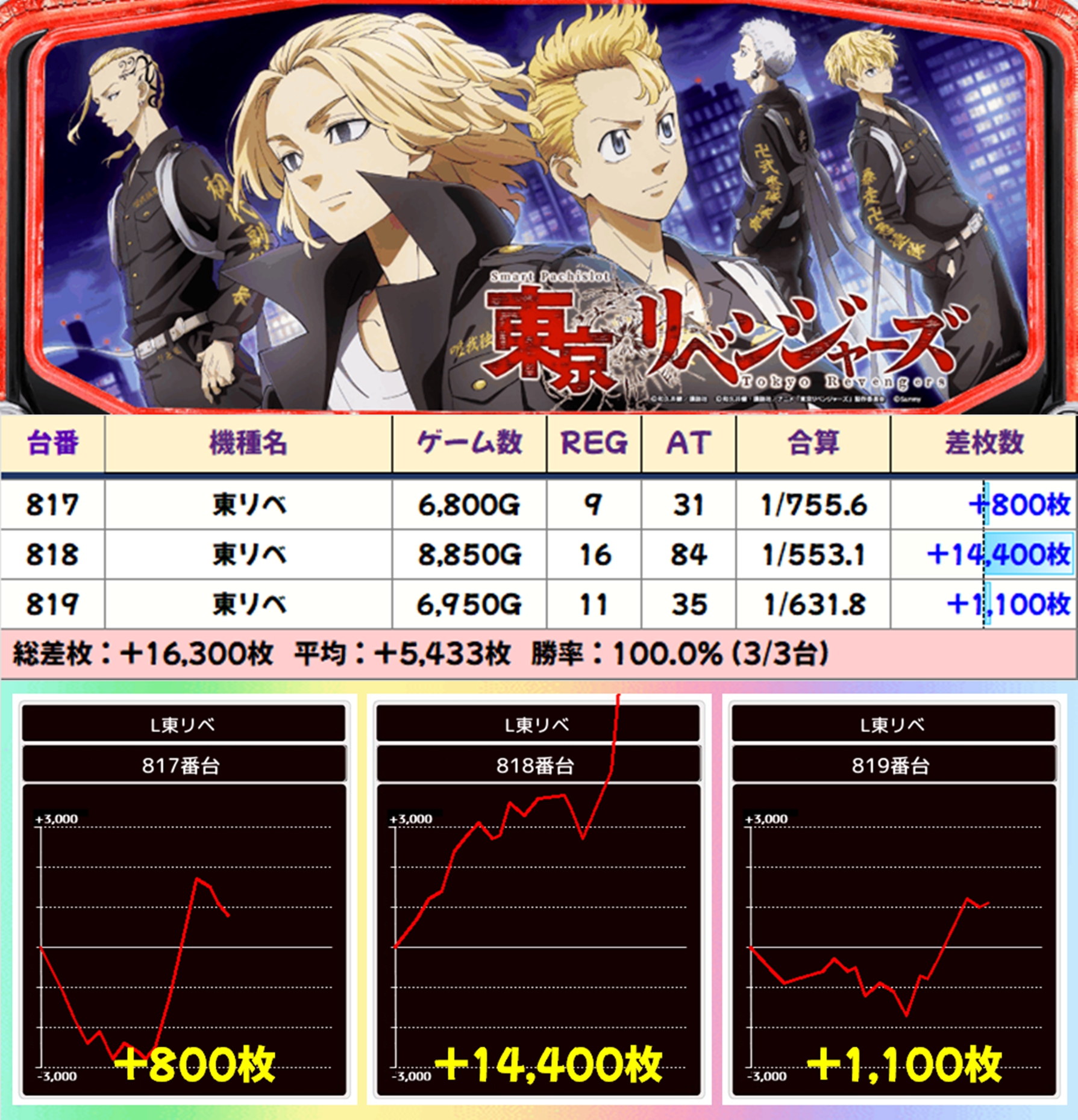 【3台並び】東リベ(817-819番台)→平均+5,433枚