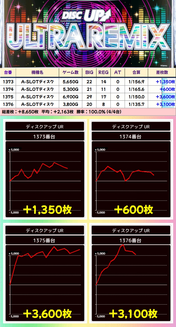 【4台並び】ディスクUR(1373-1376番台)→平均+2,163枚