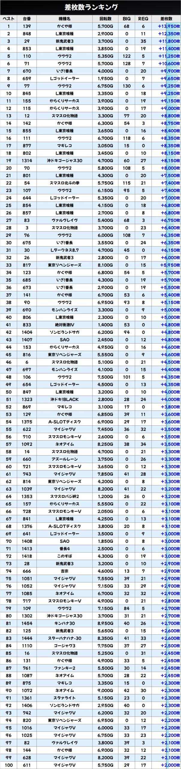 差枚数ランキング&島図をチェック!