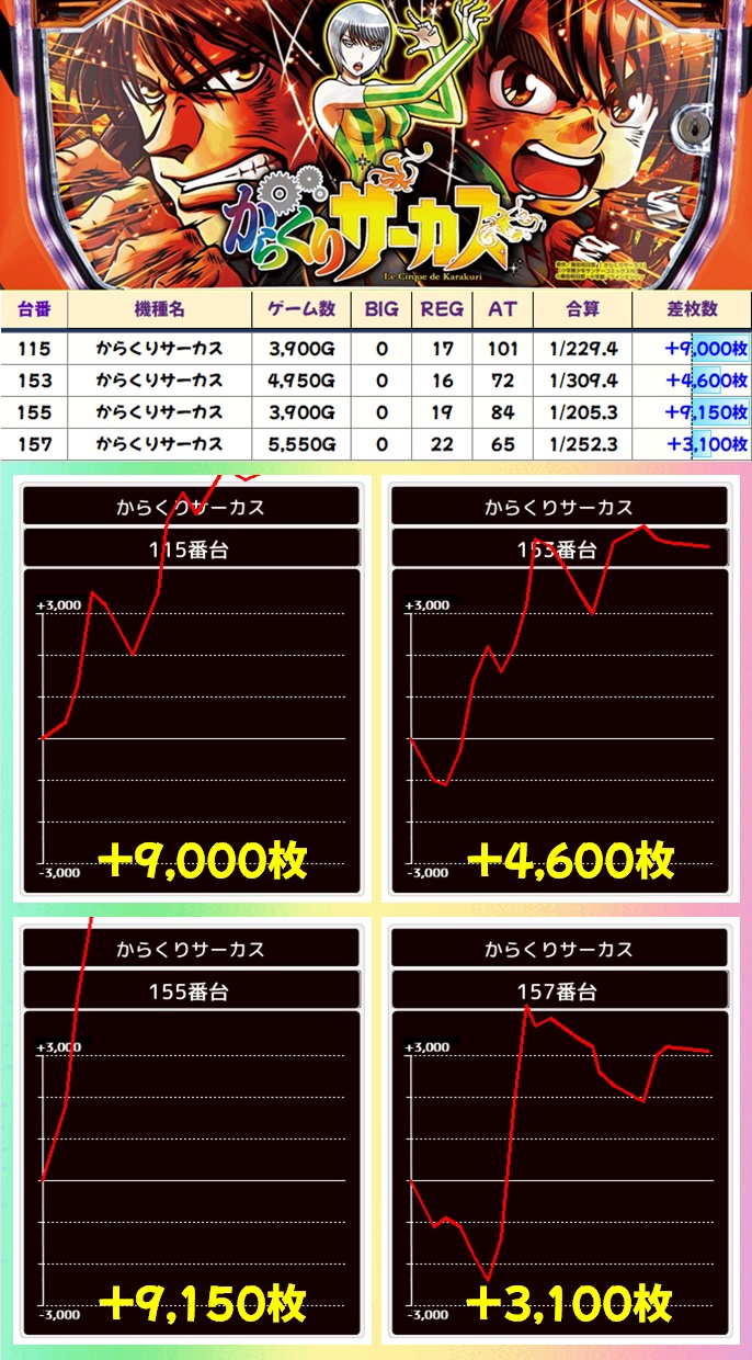 からくりも9000枚超2台に3000枚超2台としっかりと優秀台を確認!