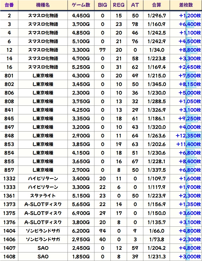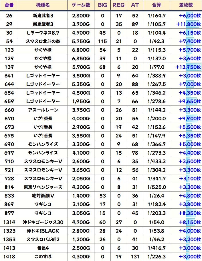 こちらも優秀台(+1000枚超)をピックアップしていきます!