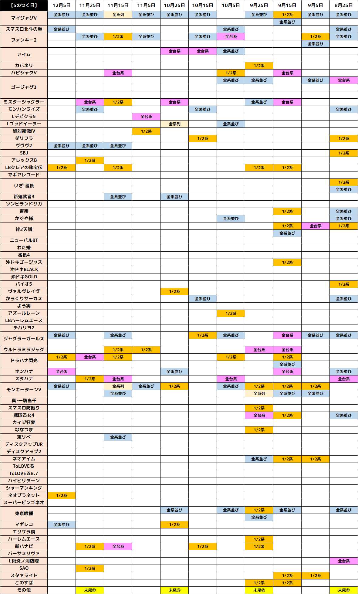 今回は下記の機種から1/2系濃厚の仕掛けを確認できました!
