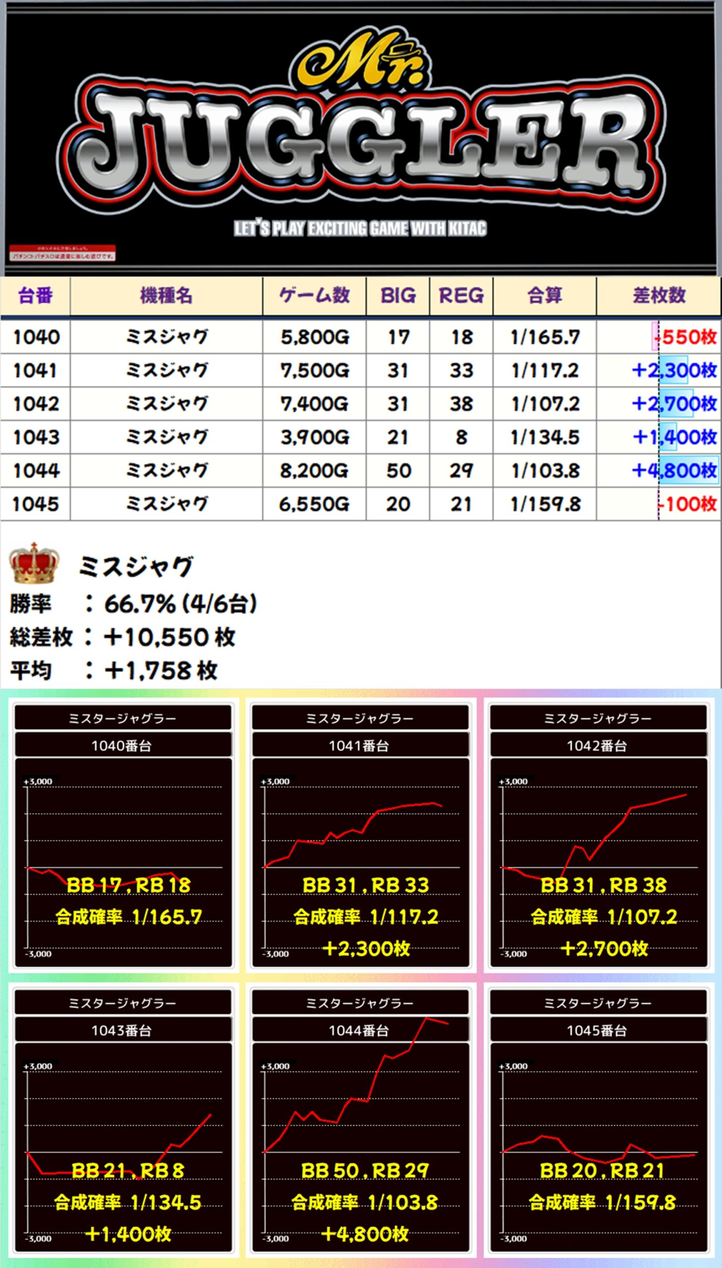 【全台系濃厚】ミスジャグ(4/6台+)→平均+1,758枚