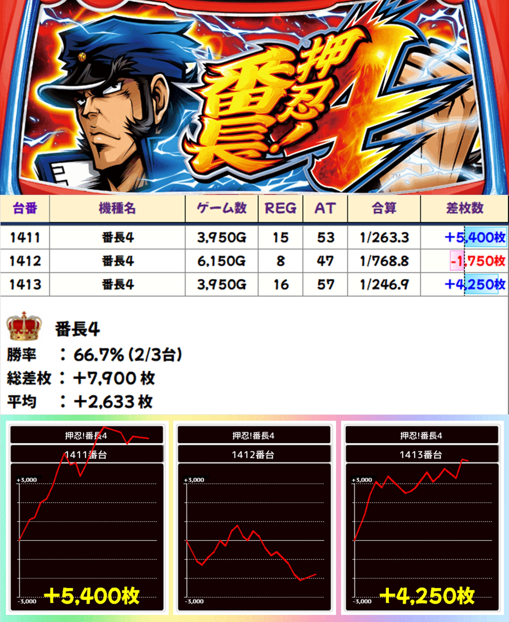 【全台系濃厚】番長4(2/3台+)→平均+2,633枚