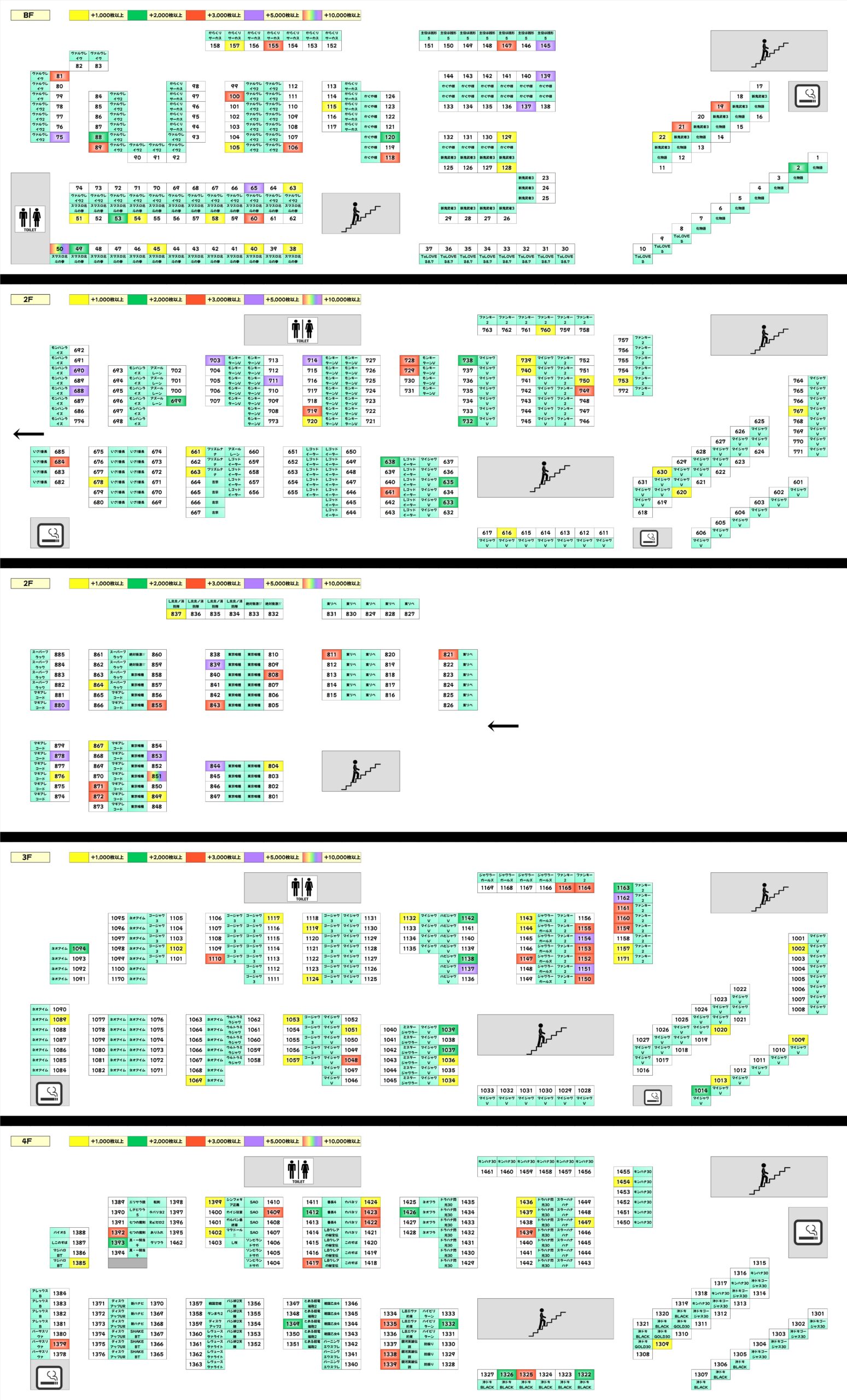 3Fのファンキー2は全台がプラスとなり、+6500枚や+6000枚、+5650枚の爆発台も複数アリ!さらに全台がしっかり打ち込まれており、仕掛けは認識されていた模様です。