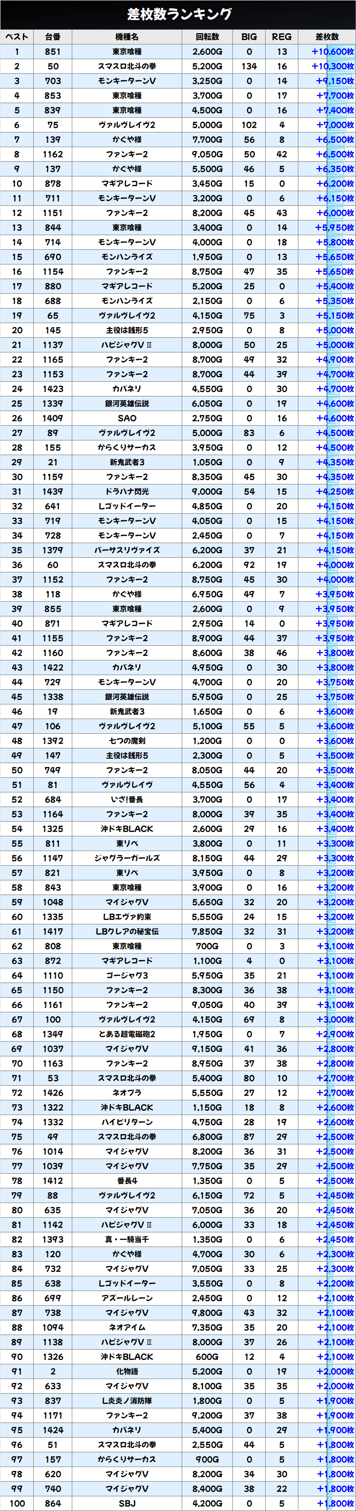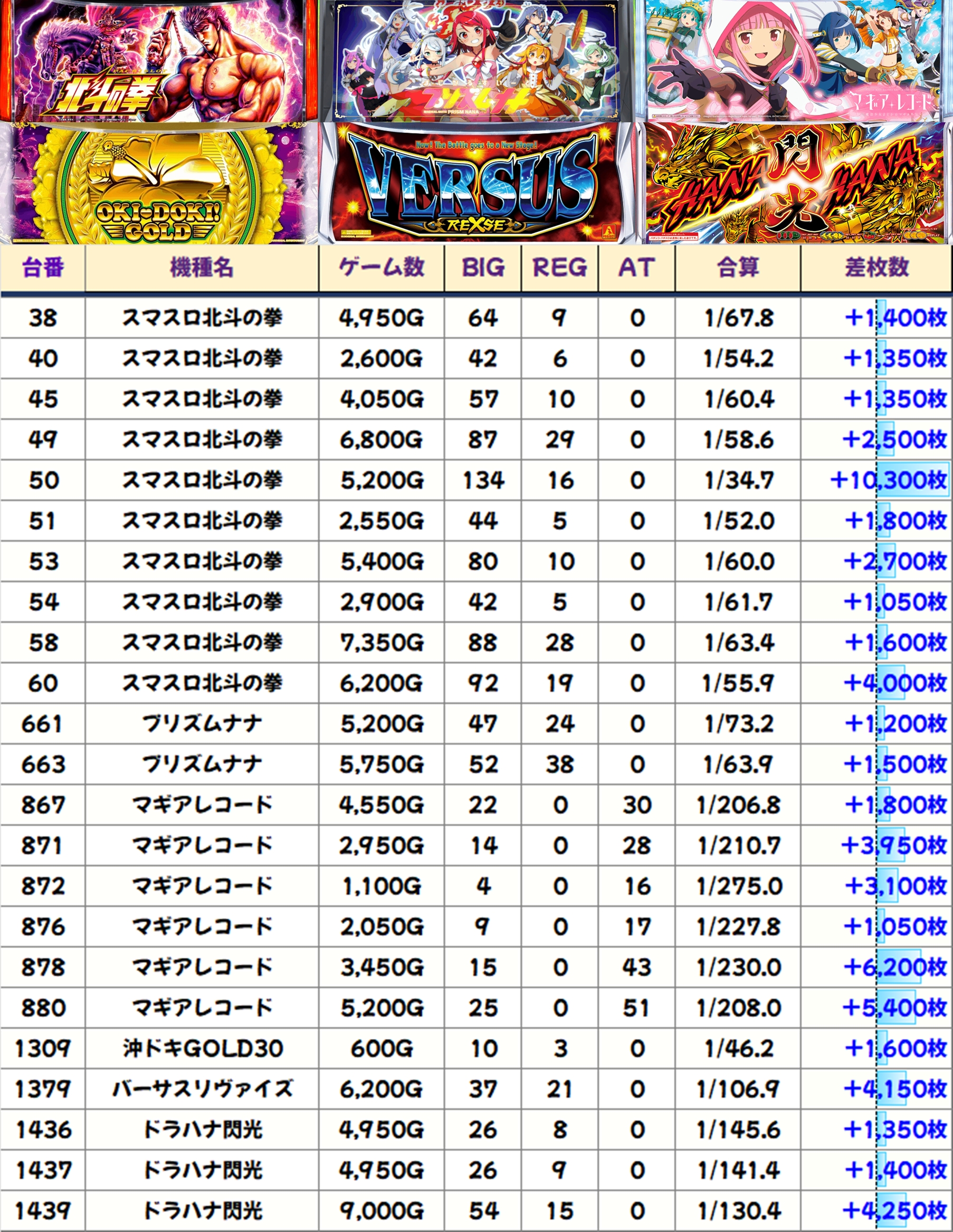 今回も優秀台(+1000枚超)をピックアップしましたので見ていきましょう!