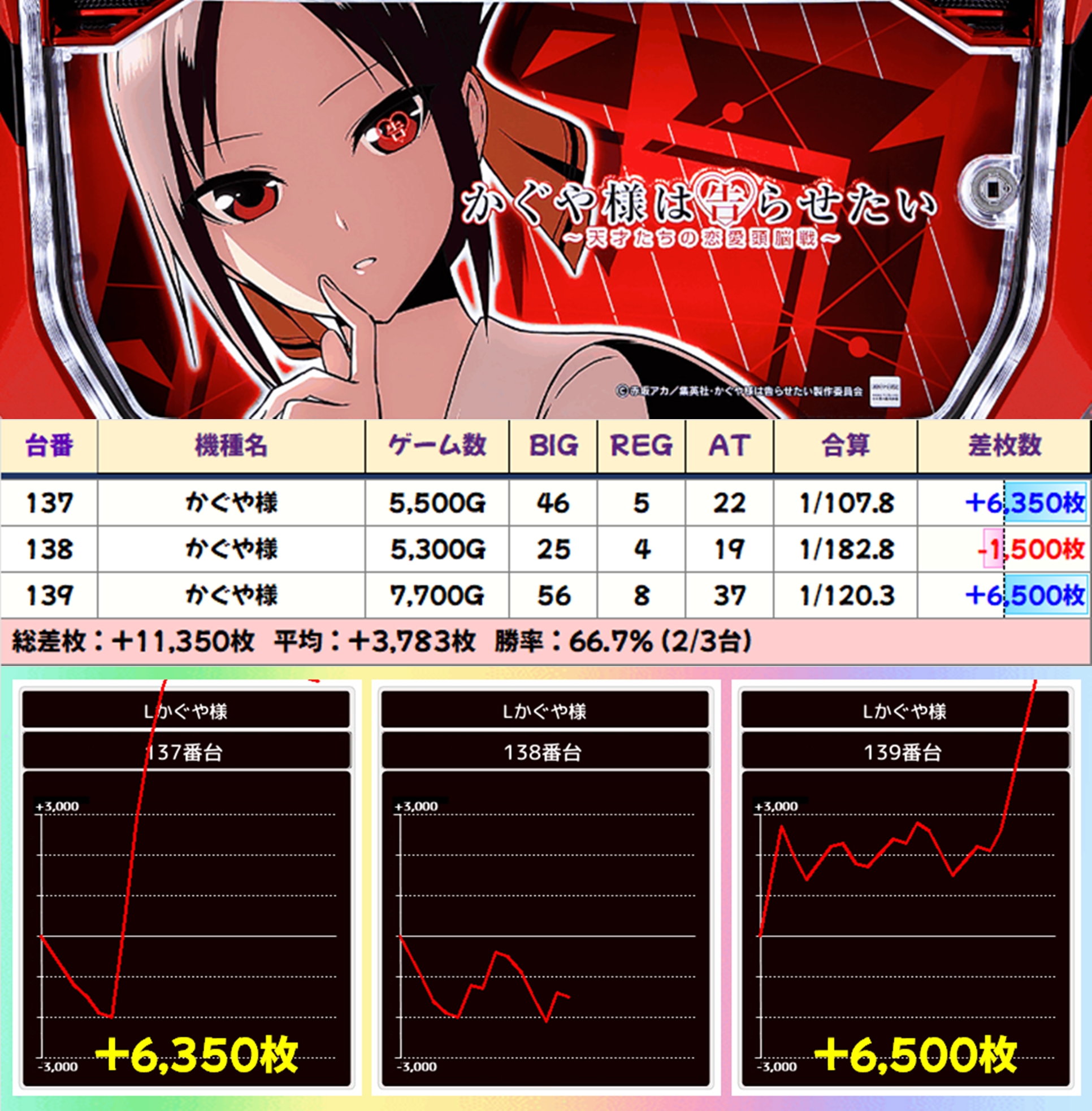 【3台並び】かぐや様(137-139番台)→平均+3,783枚