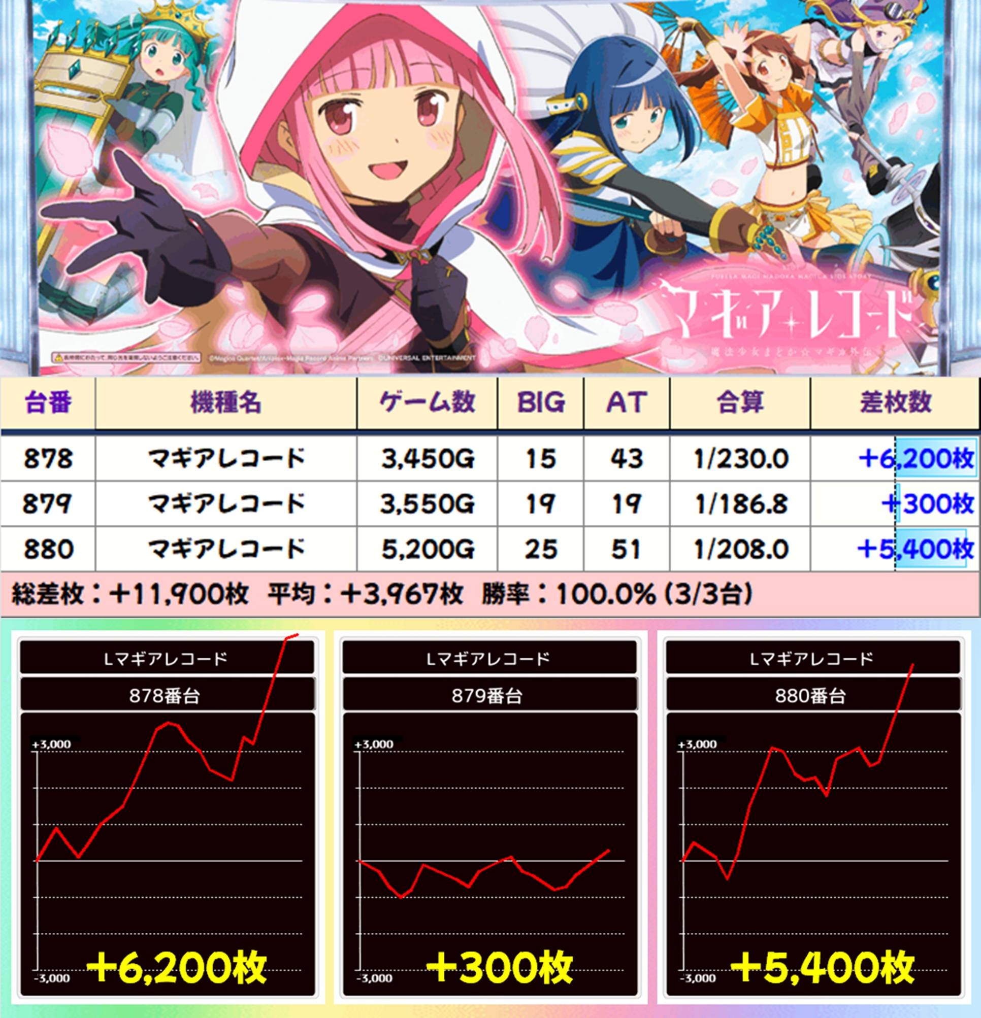 【3台並び】マギアレコード(878-880番台)→平均+3,967枚