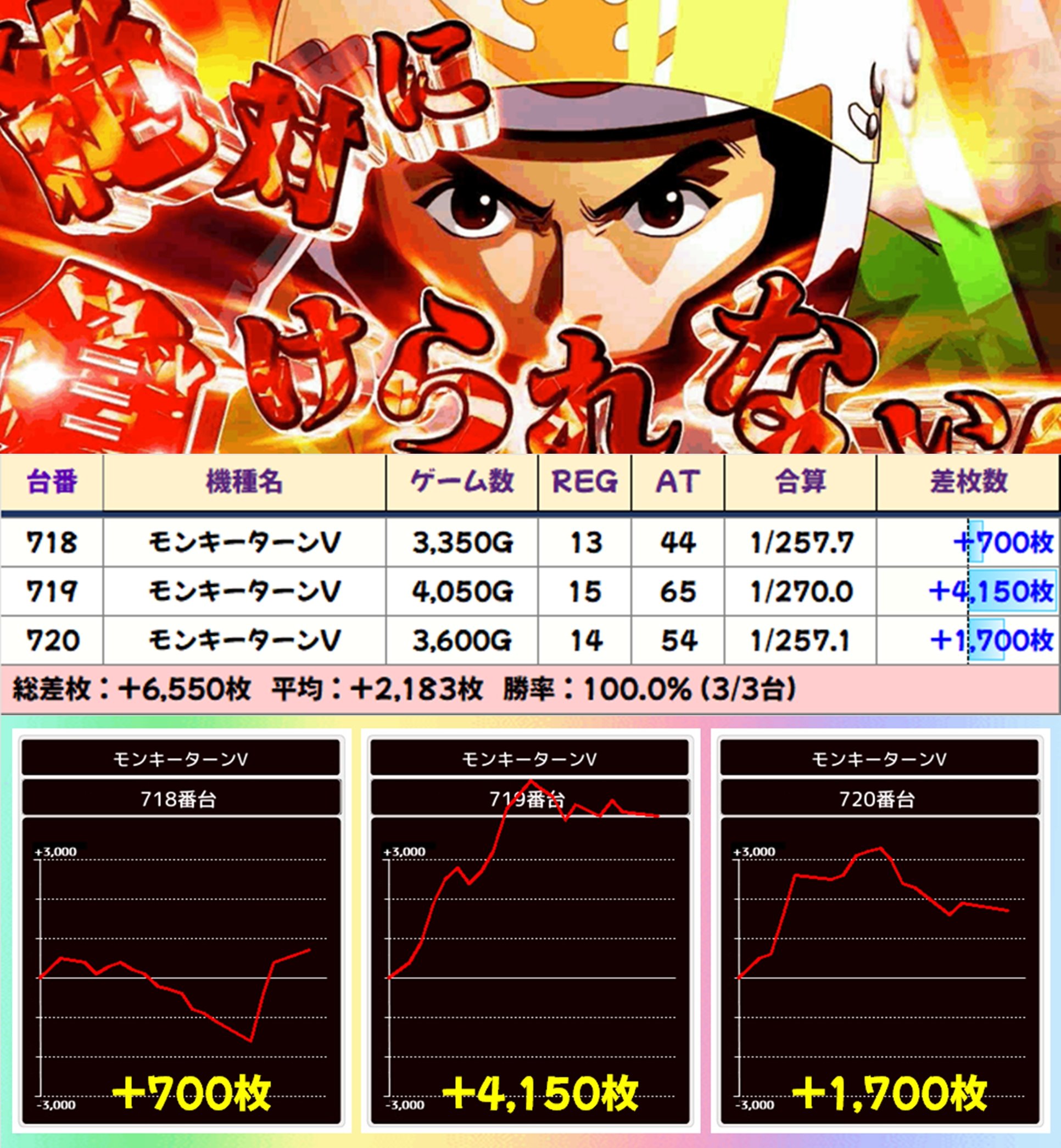 【3台並び】モンキターンV(718-720番台)→平均+2,183枚