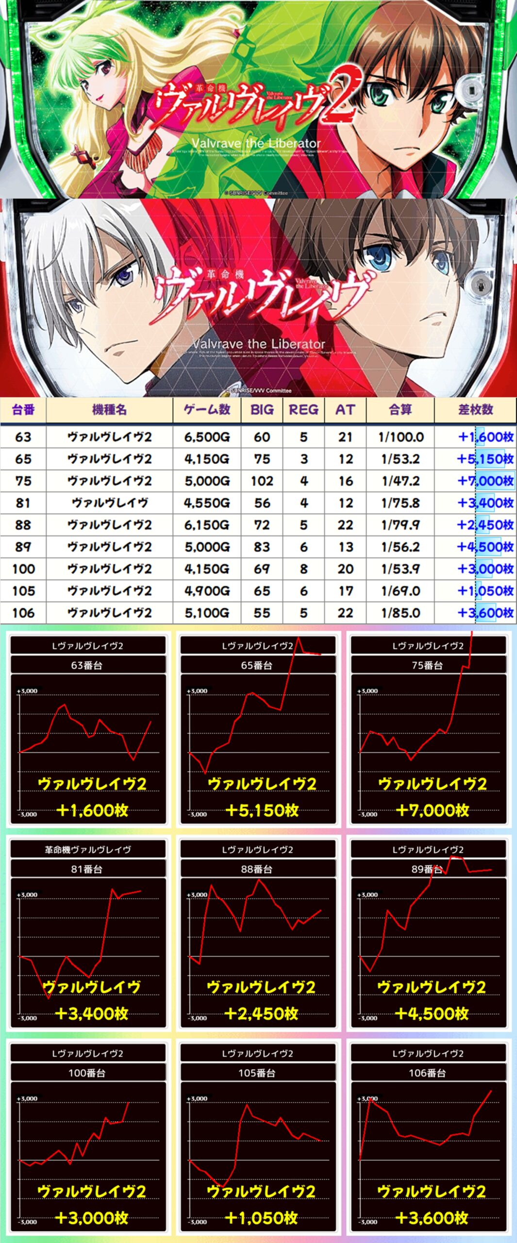 【3台並び】ヴァルヴレイヴ2(104-106番台)→平均+1,783枚
