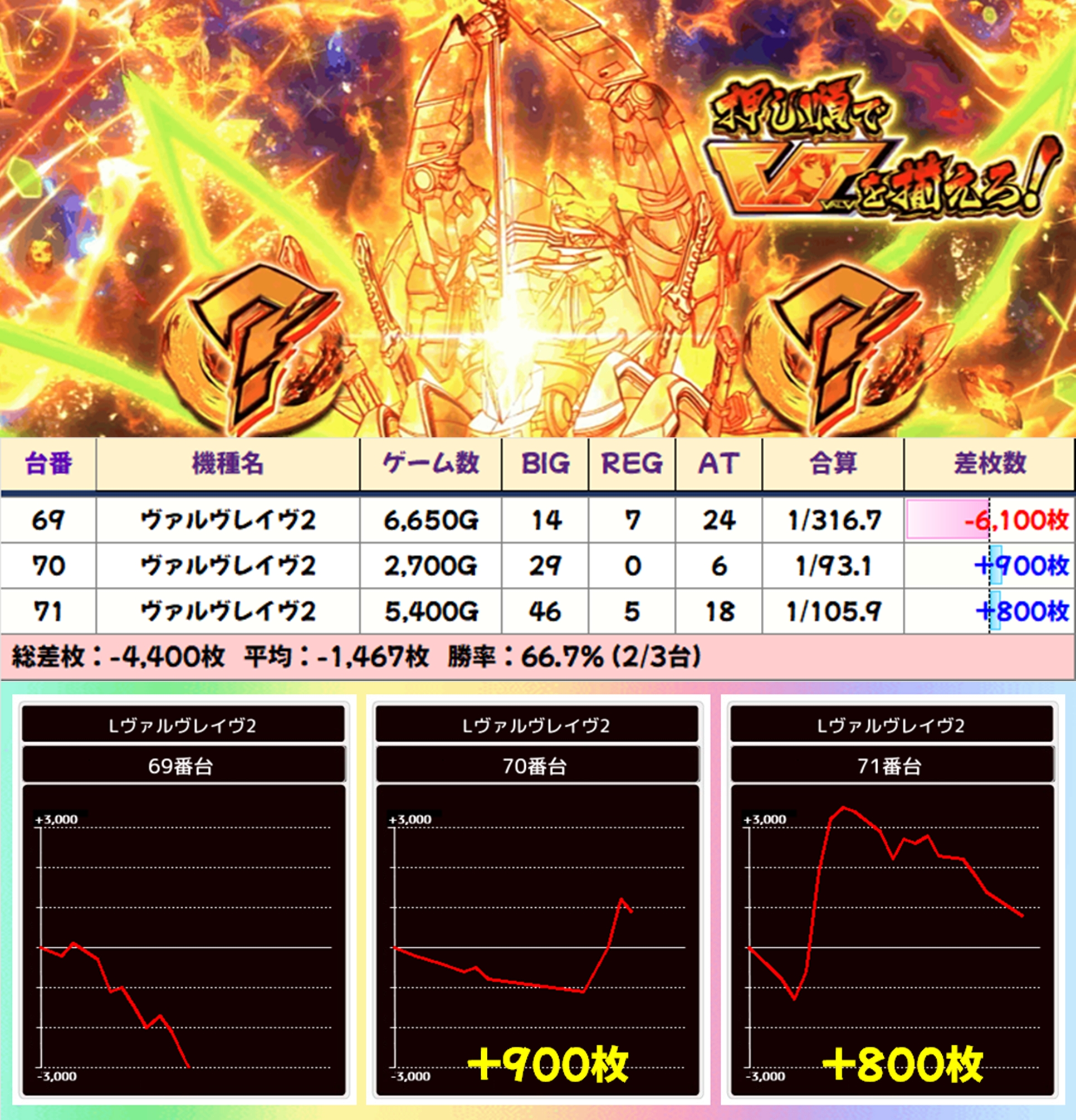 【3台並び】ヴァルヴレイヴ2(69-71番台)→平均-1,467枚枚