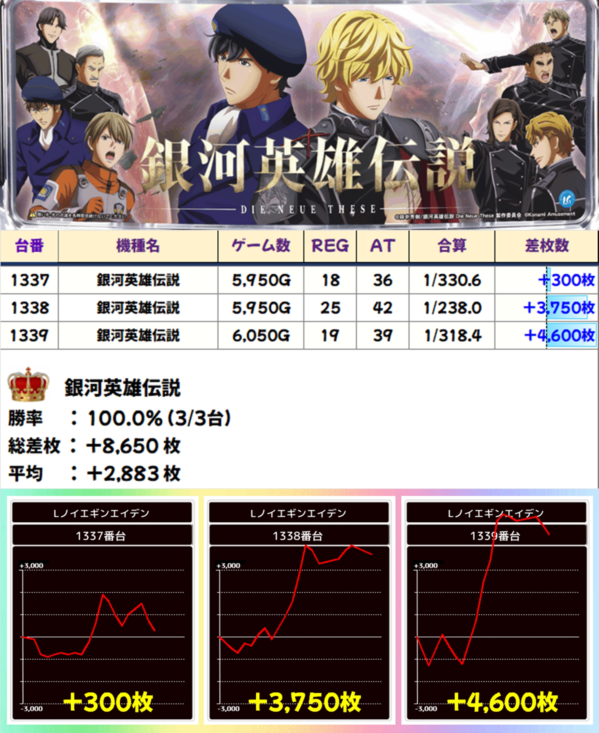 【全台系濃厚】銀河英雄伝説(3/3台+)→平均+2,883枚