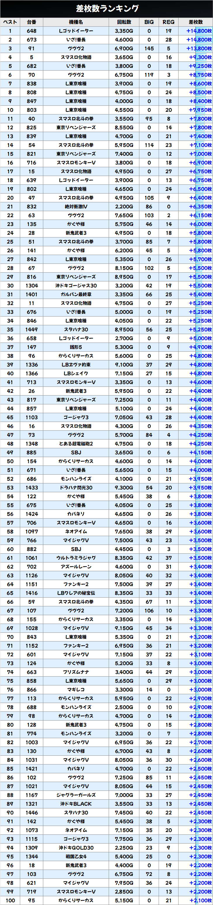 今回も優秀台(+1000枚超)をピックアップしましたので見ていきましょう!