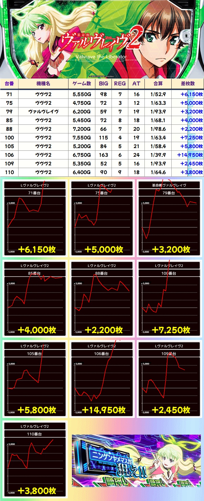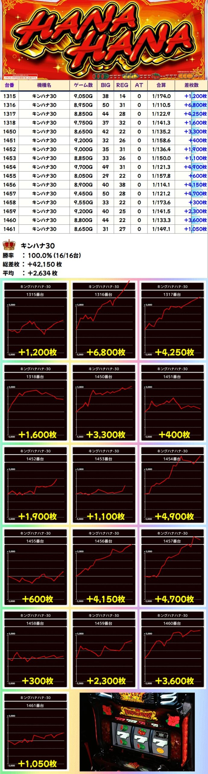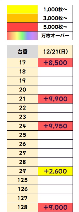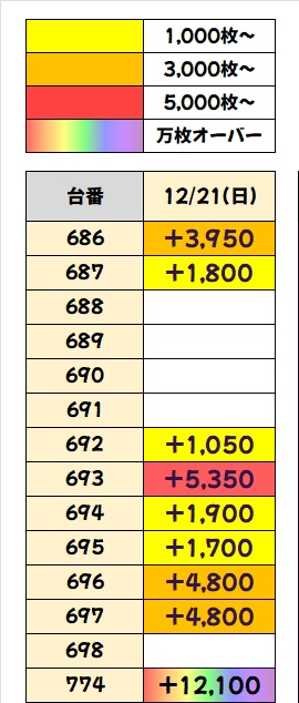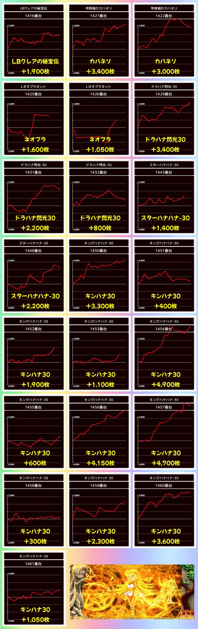 優秀列全があったこともあり、3000枚超が5台出現!明日以降も期待!