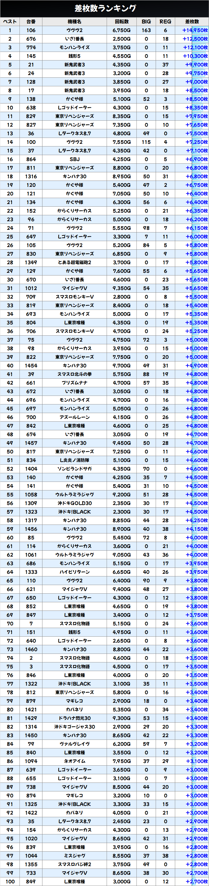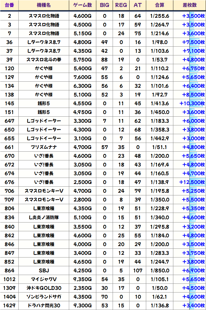 今回も優秀台(+1000枚超)をピックアップしましたので見ていきましょう!