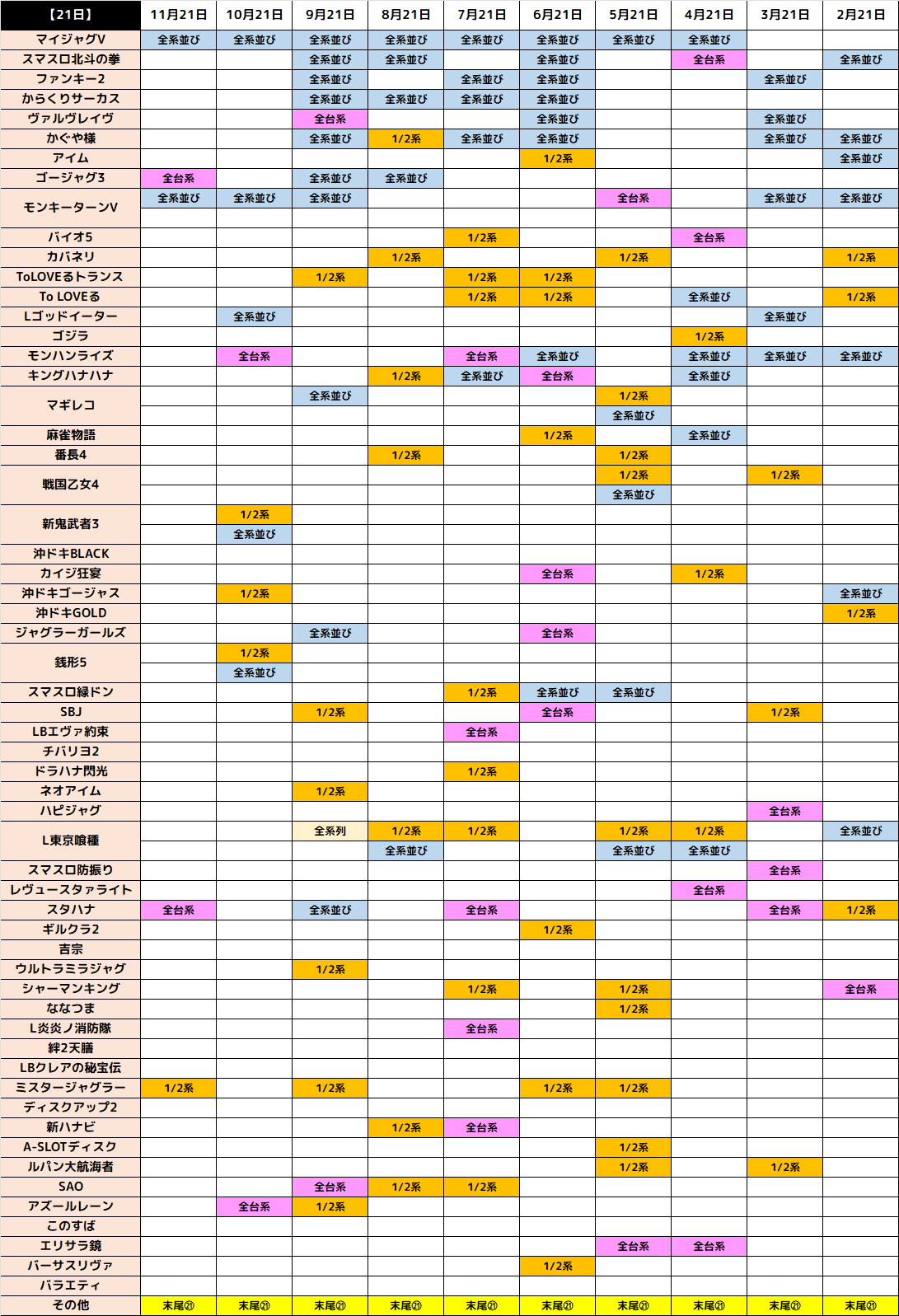 今回は下記機種に1/2系濃厚の仕掛けがあった模様です。