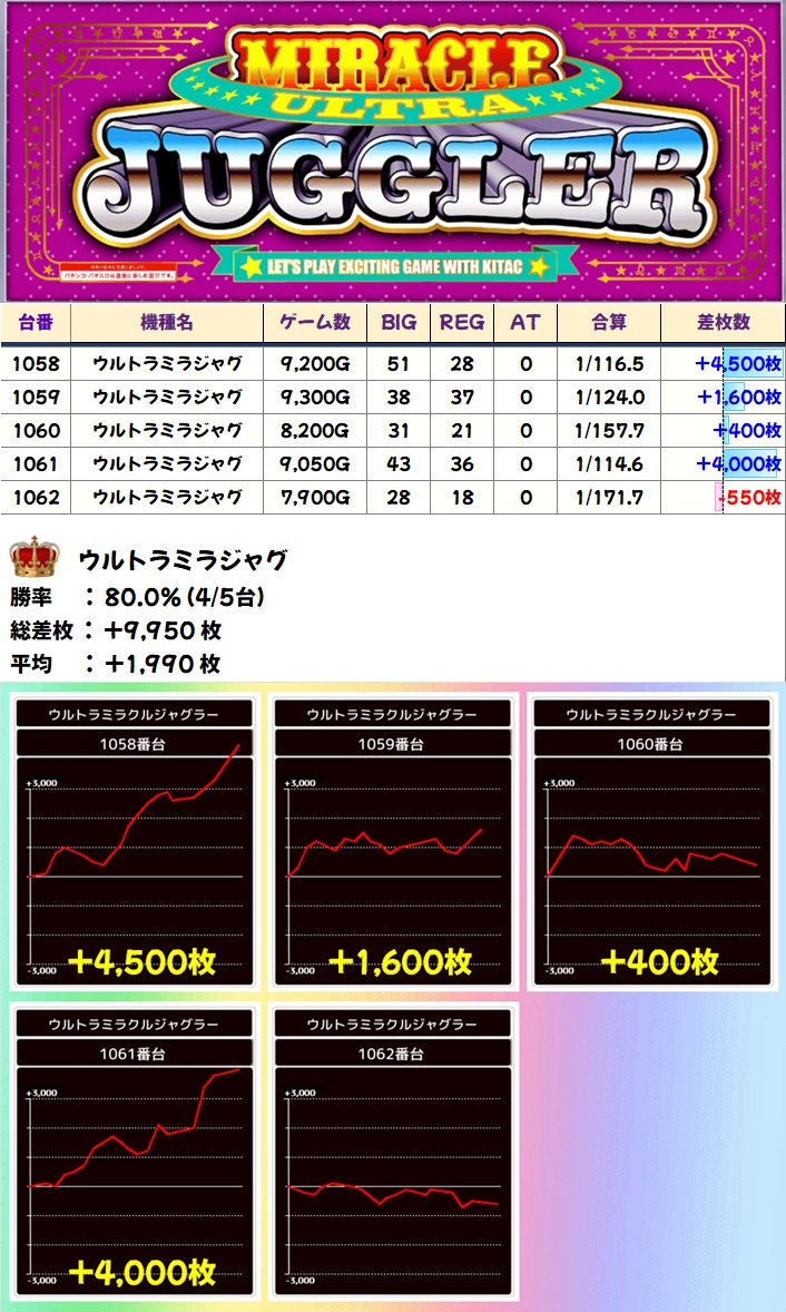 ウルトラミラジャグ(4/5台+)➡平均+1,990枚