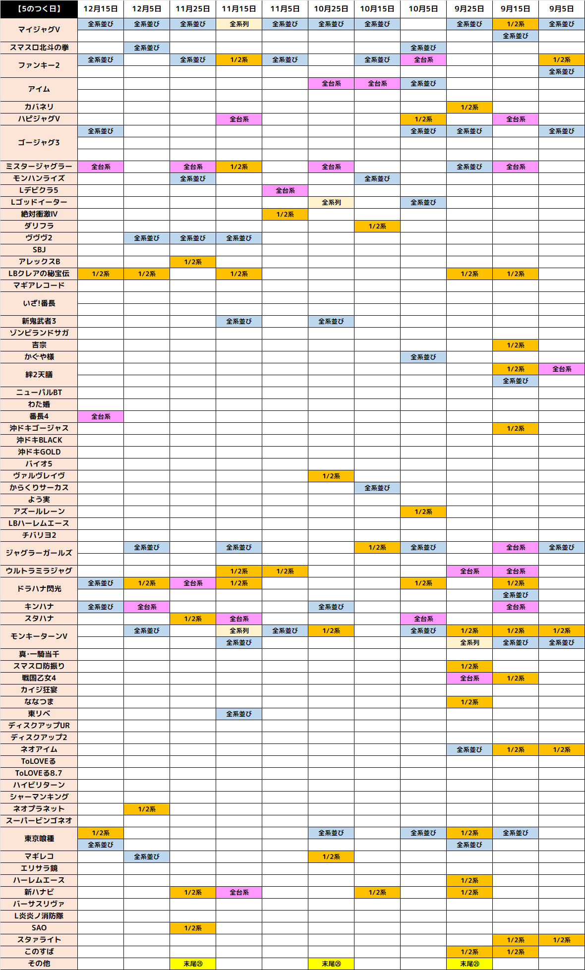 そしておなじみの日付け末尾全台系や1/2系など王道の仕掛けにも期待できます!