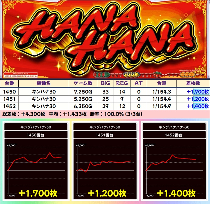 ■キンハナ30(7/16台+)➡平均+244枚