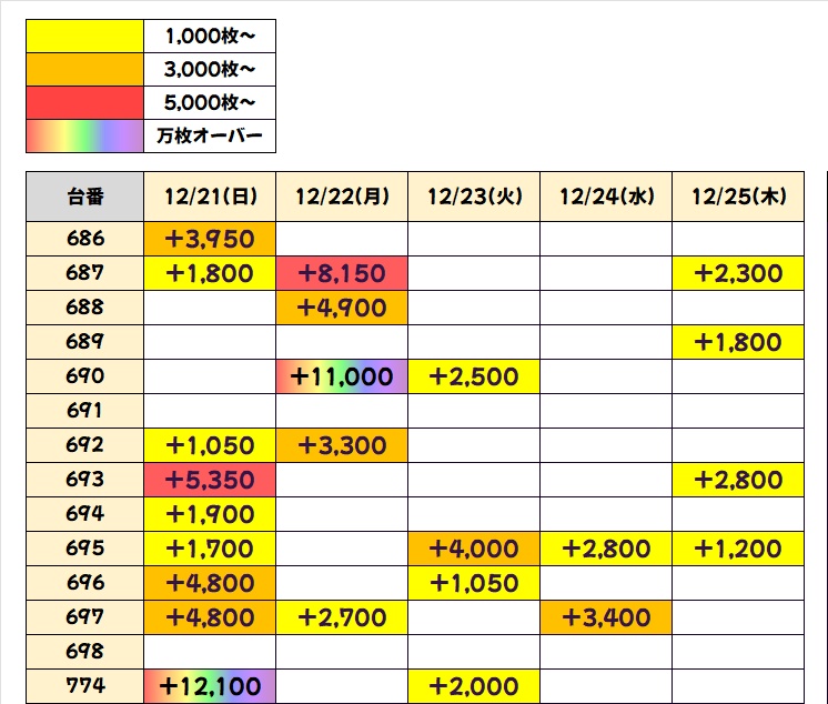 今回も優秀台(+1000枚超)をピックアップしましたので見ていきましょう!